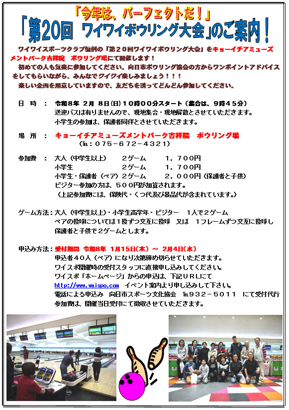 ワイワイスポーツクラブ恒例の「第20回 ワイワイボウリング大会」